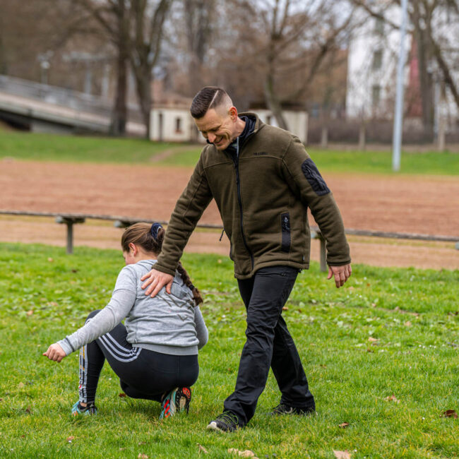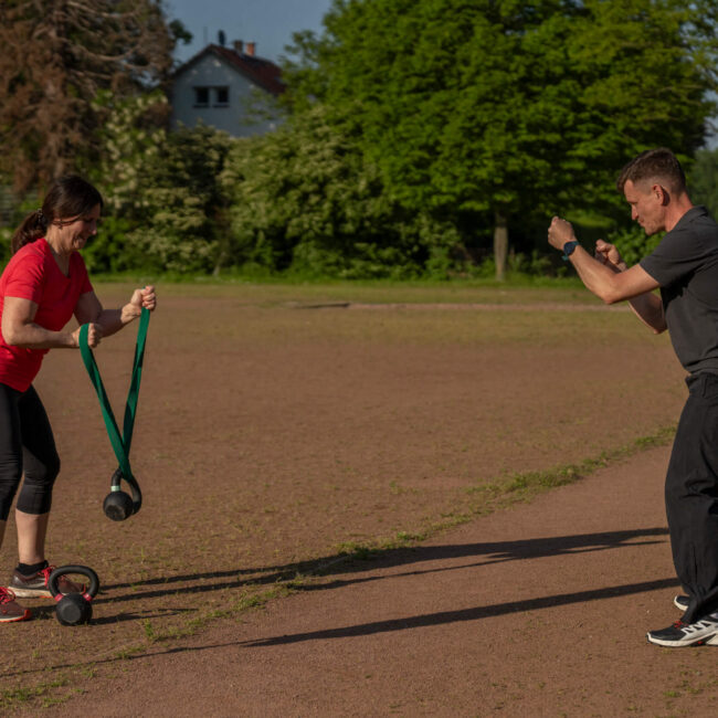 Functional Outdoor Training fordert und fördert Bewegungen – nicht Muskeln. Beim konventionellen Kraft-Training beschränkt sich das Training auf einzelne Muskelpartien. Funktionelle Bewegungsformen entsprechen dem natürlichen Bewegungsablauf des Menschen, da sie mehrere Muskeln/ -gruppen gleichzeitig trainieren. Das macht sie besonders effektiv. Es kommt hierbei nicht darauf an, oberflächliche Muskeln aufzubauen, sondern den Körper zu stabilisieren und (wieder) fit für den Alltag oder für sportliche Belastungen zu machen.